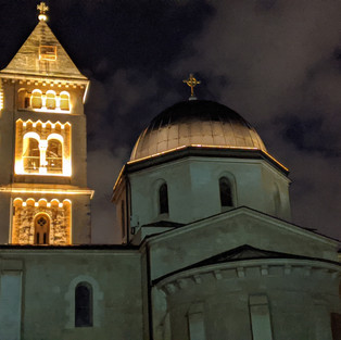 The roof was covered in black pitch and deeply slanted in parts. We walked on for a few more minutes and climbed onto a stone ledge at the roofs peak. Behind us, the Lutheran Church of the Redeemer rose in the darkness, powerful and majestic. Ahead, the Dome of the Rock burned a deep gold, almost as if the sun had decided to sprout out of the ground after setting on the horizon.